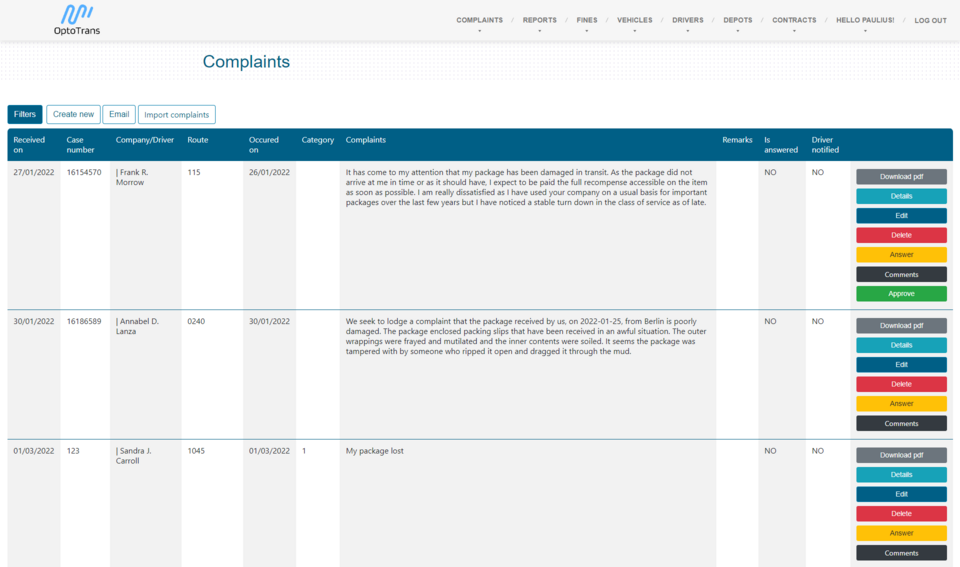 Complaints management is a must when dealing with customers priceless packages or being a subcontractor of PostNl, DHL, GLS or other package delivery company. OptoTrans offers complaints handling and managing system that automates most of the part when dealing with complaints and allows handle a complaint in less than a minute.
