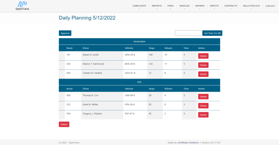 OptoTrans Software provides various tools for day-to-day basis planning. Assign routes, vehicles to specific driver. Manage stops amount, volume and time.