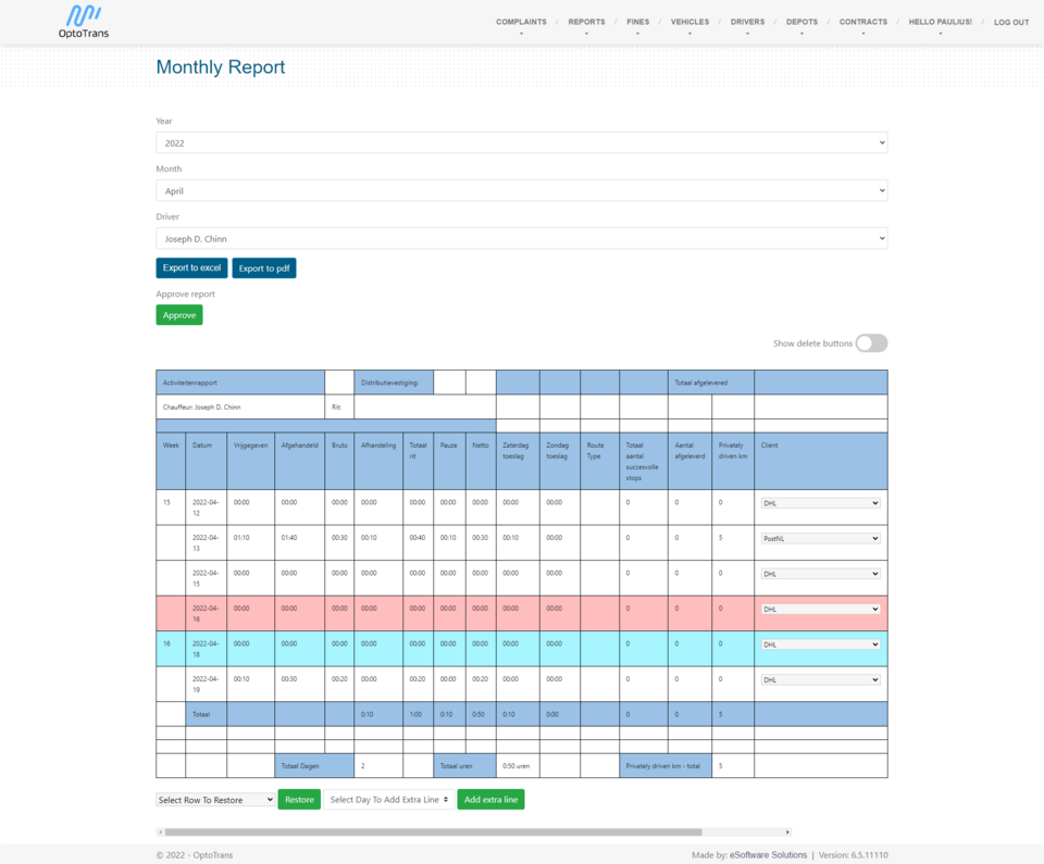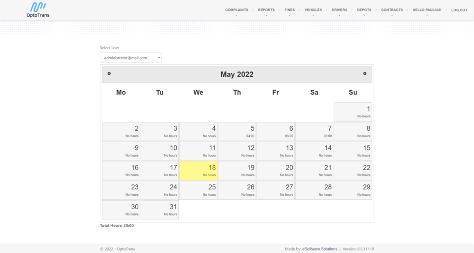 OptoTrans Software provides time logging tools for drivers and monthly reports for administration. Easily log spent hours, view logs and add comments.